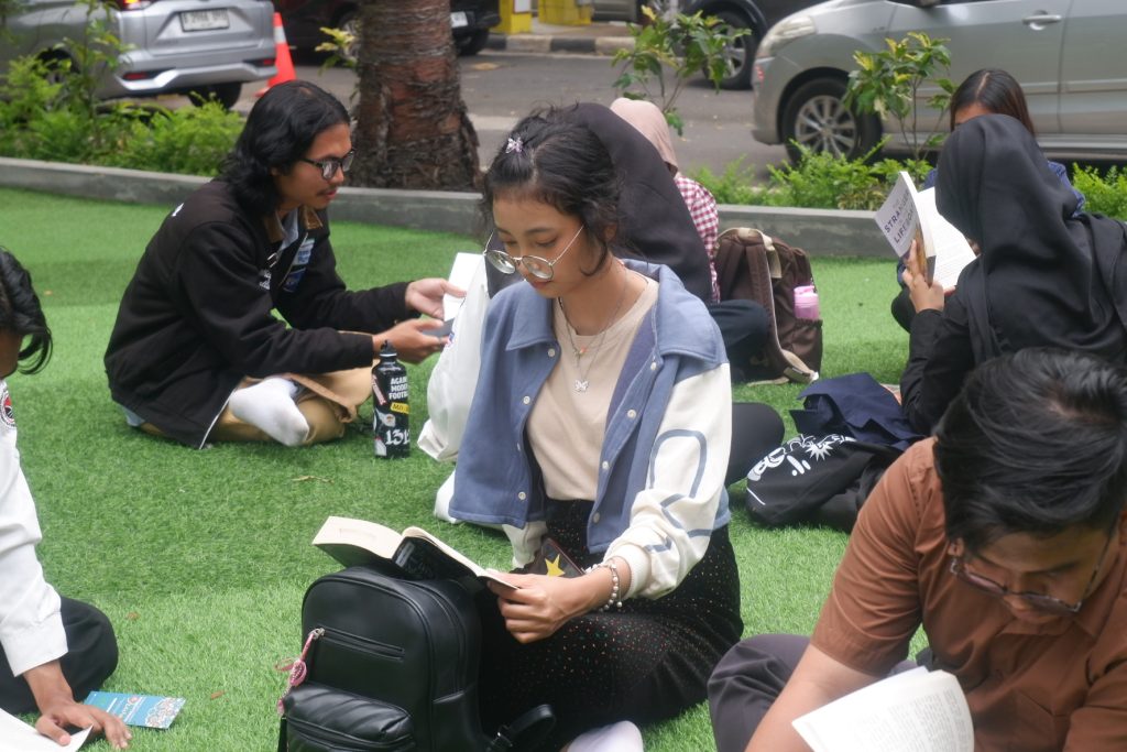 Ruang bertumbuh melalui membaca, berdiskusi, dan kolaborasi literasi yang bermakna di lingkungan kampus.